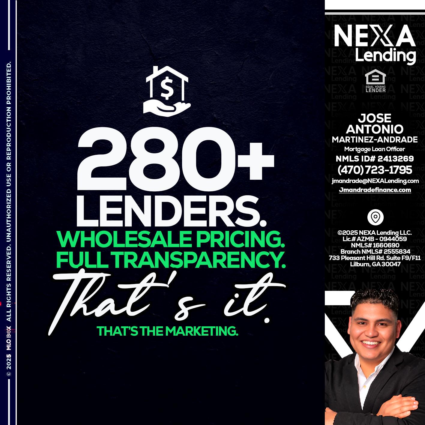 Hi, my name is Jose Antonio Martinez-Andrade. I’m a Loan Officer with NEXA Mortgage LLC., offering personalized mortgage solutions, fast customized quotes, great rates and service with integrity.Let’s get you started with a faster, easier, cheaper mortgage 👇🏆 Home...