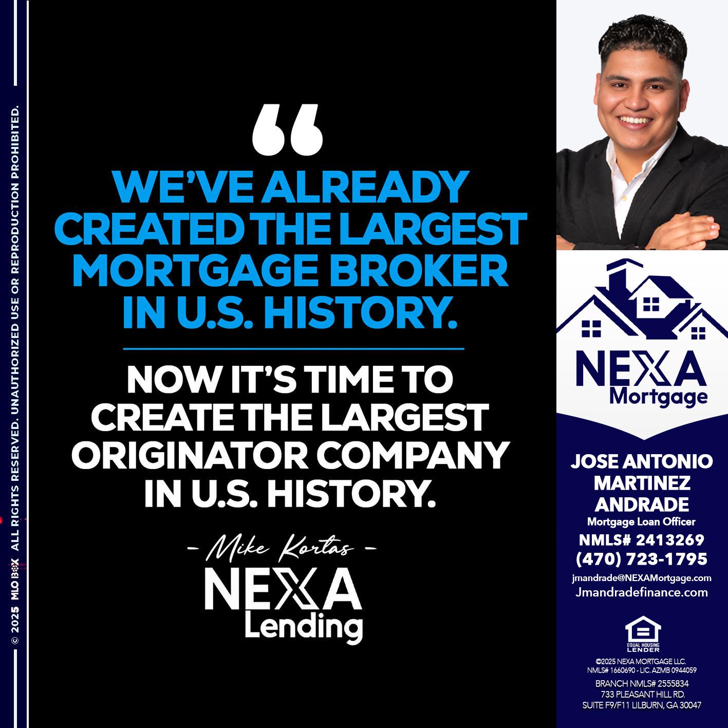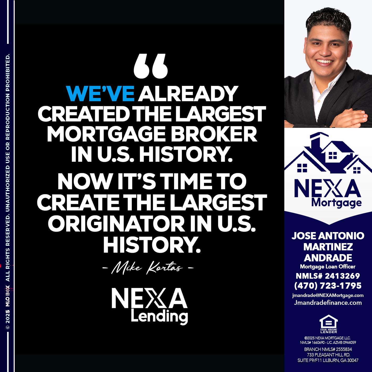 Hi, my name is Jose Antonio Martinez-Andrade. I’m a Loan Officer with NEXA Mortgage LLC., offering personalized mortgage solutions, fast customized quotes, great rates and service with integrity.Let’s get you started with a faster, easier, cheaper mortgage 👇🏆 Home...