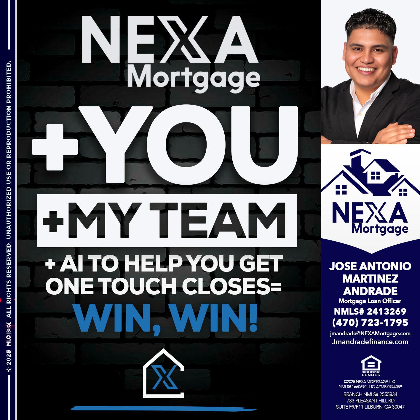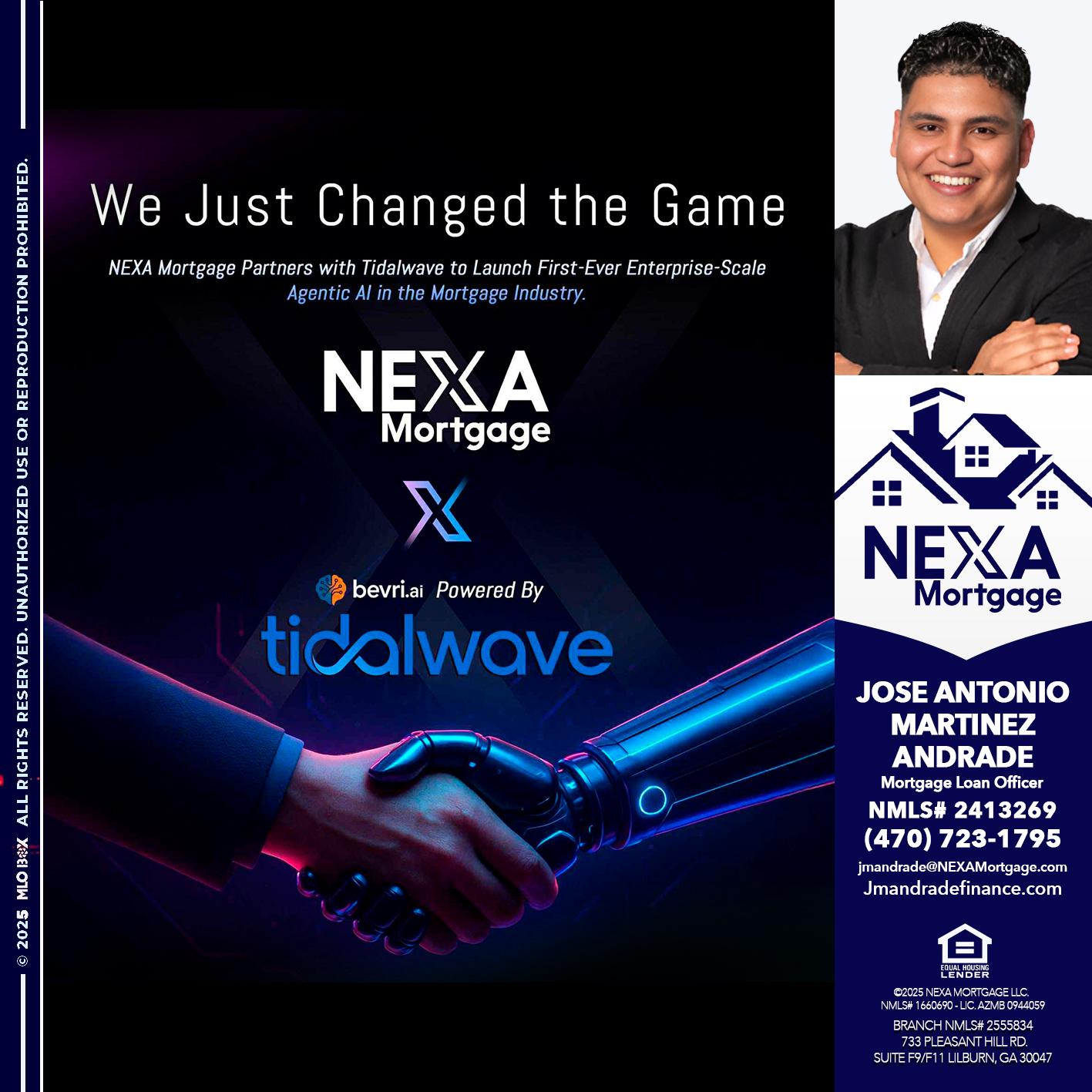 Hi, my name is Jose Antonio Martinez-Andrade. I’m a Loan Officer with NEXA Mortgage LLC., offering personalized mortgage solutions, fast customized quotes, great rates and service with integrity.Let’s get you started with a faster, easier, cheaper mortgage 👇🏆 Home...