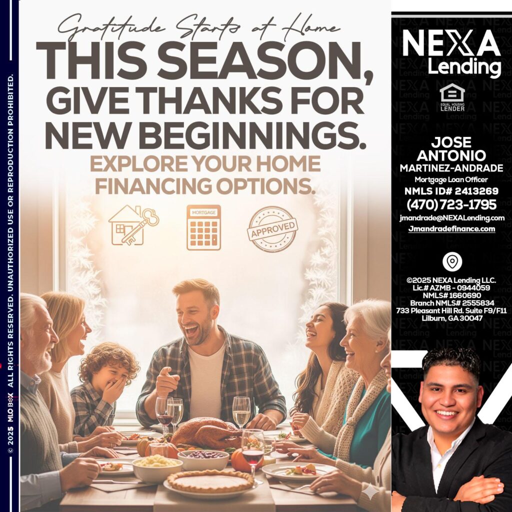 Hi, my name is Jose Antonio Martinez-Andrade. I’m a Loan Officer with NEXA Mortgage LLC., offering personalized mortgage solutions, fast customized quotes, great rates and service with integrity.